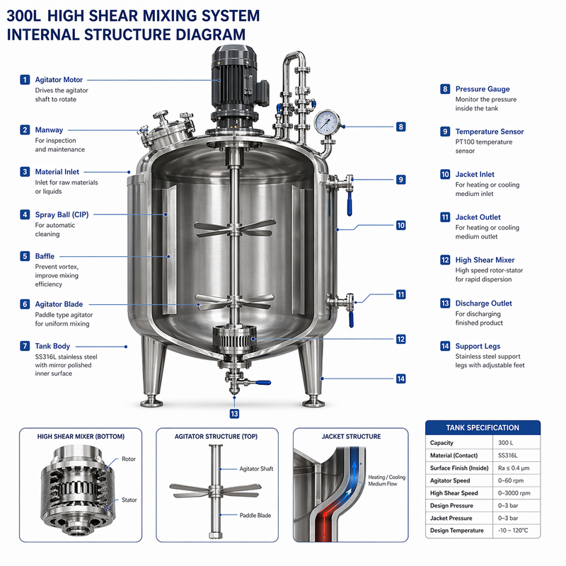 | Mixing Tank | 1000L SS316L vessel with manway |